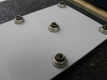 Many Aerospace part require some form of sealant to protect components from corrosion. Shown below is a example of a filet seal around bushings that were recently installed. after the sealant cures a coat of primer and paint is applied to complete the part.